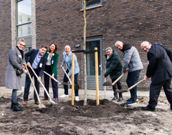 Anne Koning, gedeputeerde Volkshuisvesting van de provincie Zuid-Holland, overhandigde aan bewoners een symbolische sleutel. Samen met wethouder Michiel Ferwerda, directeur-bestuurders Ferry van der Pal (WoonWest) en Wilfried Stribos (Arcade) en bewoners plantte zij een boom. ‘We zijn trots dat wij het eerste project binnen de Bouwstroom Haaglanden hebben opgeleverd’, aldus Ferry van der Pal. ‘Dankzij de samenwerking tussen onze corporaties en aannemer Boele & van Eesteren is het gelukt 104 sociale huurappartementen te realiseren. Het is mooi om te zien dat deze woningen nieuwe bewoners een fijne plek bieden. Juist nu er grote behoefte is aan betaalbare huurwoningen voor starters en doorstromers.’