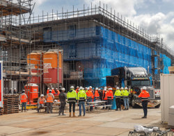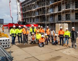 Een feestelijk moment op de bouwplaats in ’s-Gravenzande: het project Waelpolder in ‘s-Gravenzande, met 104 sociale huurwoningen, heeft vandaag het hoogste punt bereikt. Ter gelegenheid hiervan werd het bouwteam getrakteerd op een gezamenlijke lunch. De woningen worden via Bouwstroom Haaglanden gerealiseerd door Boele & van Eesteren, in opdracht van woningcorporaties Arcade en WoonWest.